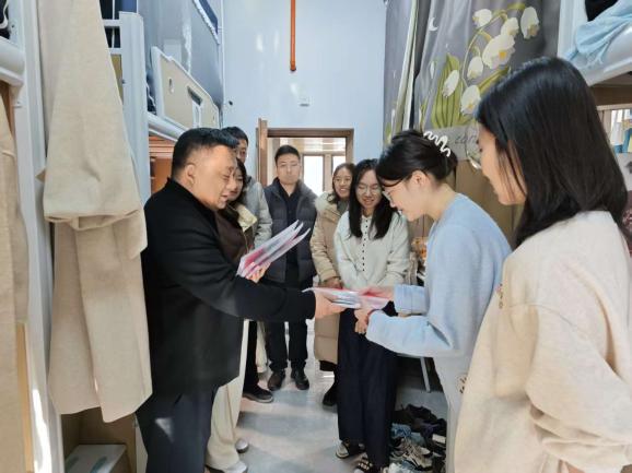 为帮助2026届考研学子坚定备考信心、缓解冲刺压力、激发奋斗热情,12月17日,院党委书记史少鹏、院党委副书记李婷深入学生宿舍,为学子们送上专属的暖心礼包,助力考研学子“一战成硕”。