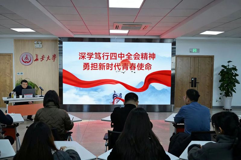 为深入学习贯彻党的二十届四中全会精神,12月11日下午,成人app 在朝晖园一站式学生社区举办专题宣讲会。校党委副书记、纪委书记陶继东出席并作题为《深学笃行四中全会精神 勇担新时代青春使命》的专题报告。院党委书记史少鹏、党委副书记李婷参加宣讲会,会议由史少鹏主持。