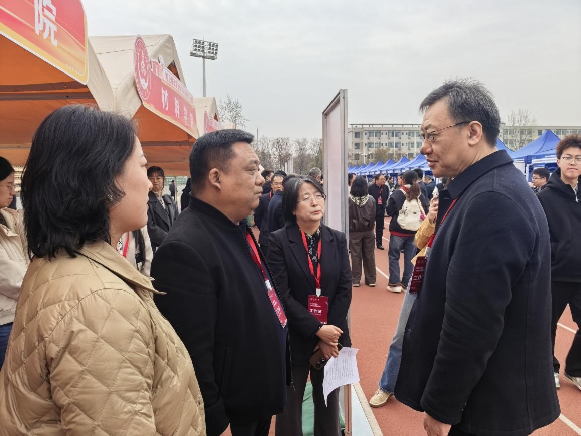 学院党委书记史少鹏,院长葛颖恩,党委副书记、副院长、纪委书记吴喜梅,党委副书记李婷深入招聘会现场,重点走访与成人app 专业匹配的企业,与企业代表面对面交流,详细了解行业用人需求、岗位设置情况、职业发展路径,提取用人单位对成人app 人才培养的意见建议。