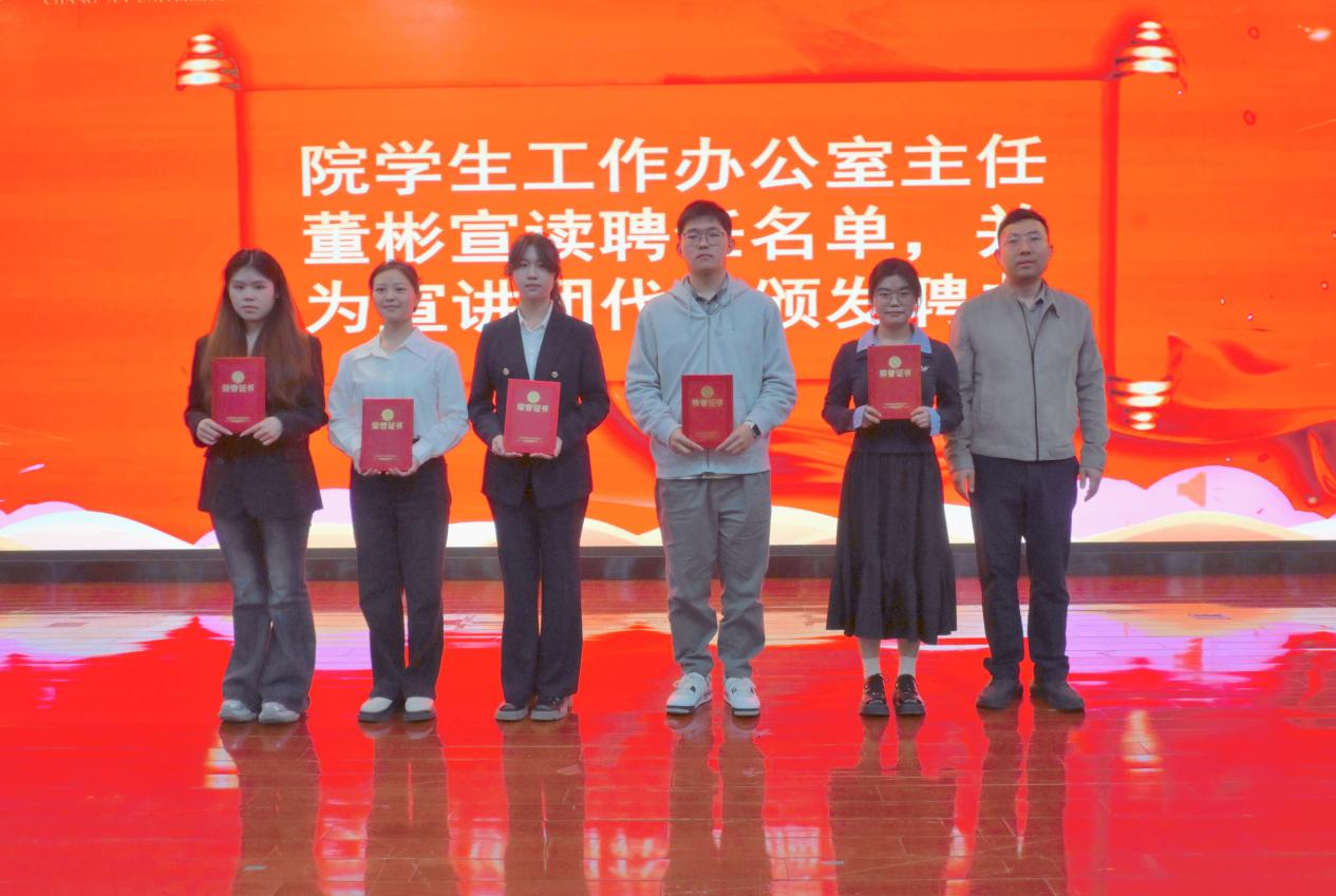 院学生办公室主任董彬宣读聘任名单并为宣讲团代表颁发聘书